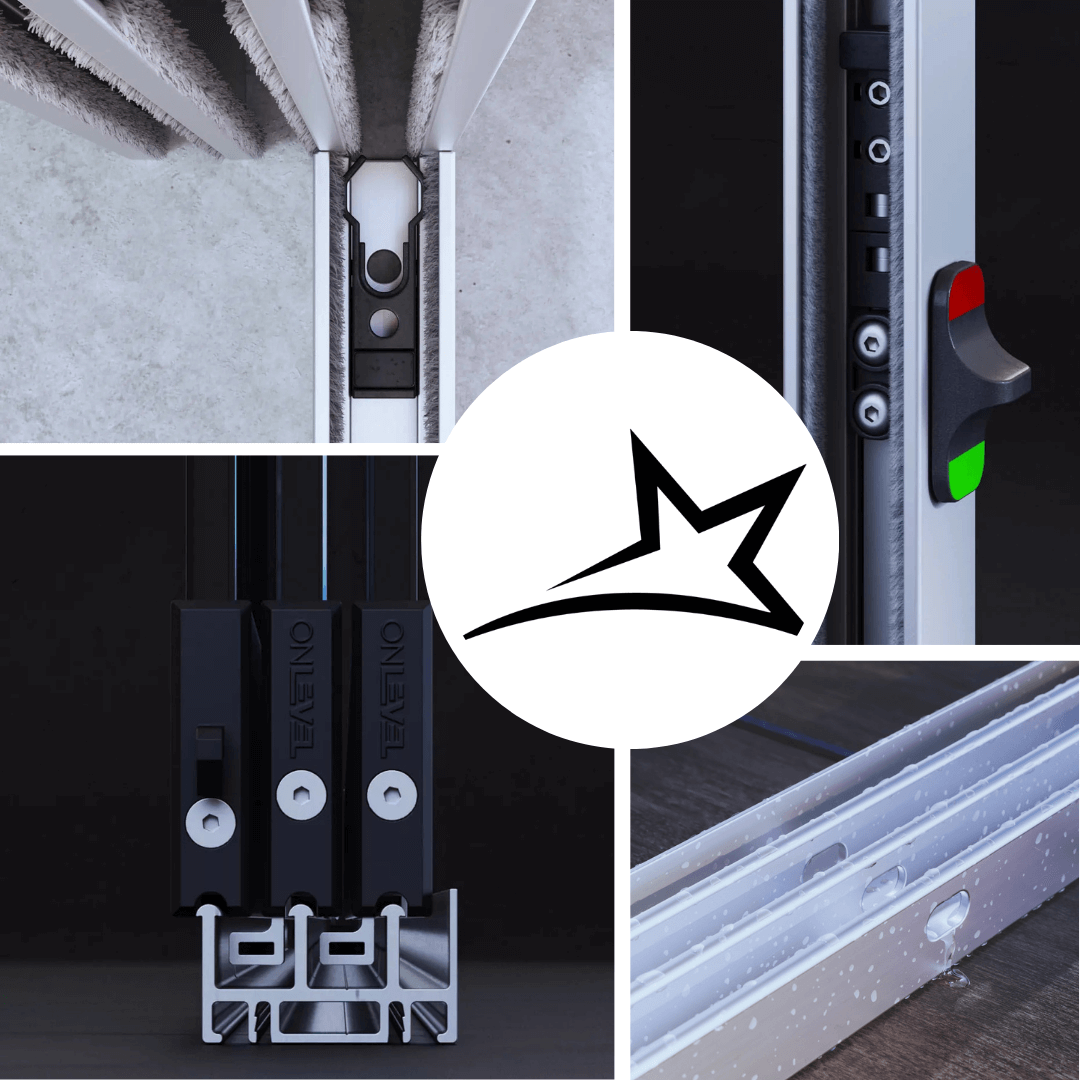 Auch die Sicherheit liegt uns sehr am Herzen: Wir verwenden ausschließlich ESG Sicherheitsglas in 10 mm Glasdicke. Zusätzlich ist ein Hebeschutz installiert, der das ungewollte aushebeln der Schiebeelemente verhindert.