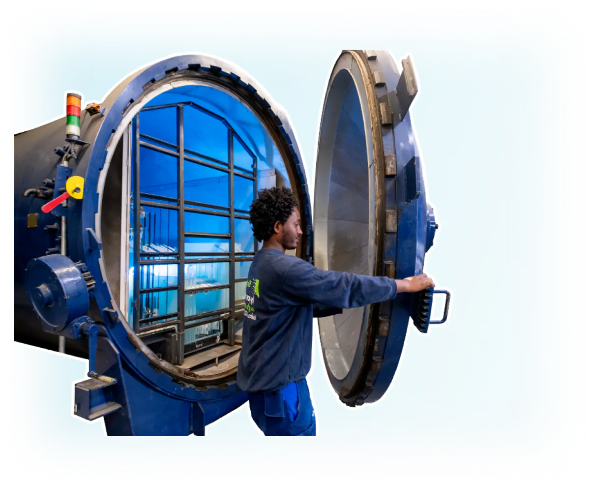 Wir fertigen Glas aller Art individuell nach Maß - perfekt auf Ihre Einbausituation und Wünsche abgestimmt. Unsere Rohglas-Produkte werden im Floatverfahren hergestellt, unser ESG-Glas entsteht durch einen Vorspannofen. Das VSG Glas wird mittels Vorverbund und Autoclaven laminiert. Das Glas wird anschließend ganz nach Ihren Wünschen zugeschnitten. Hierfür nutzen wir unseren vollautomatischen Kombinations-Zuschnitt, der es uns erlaubt millimetergenau zu arbeiten.