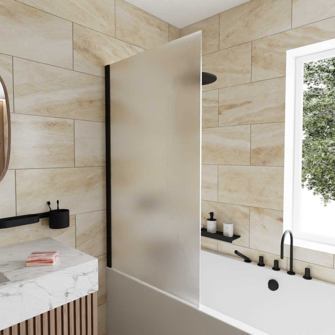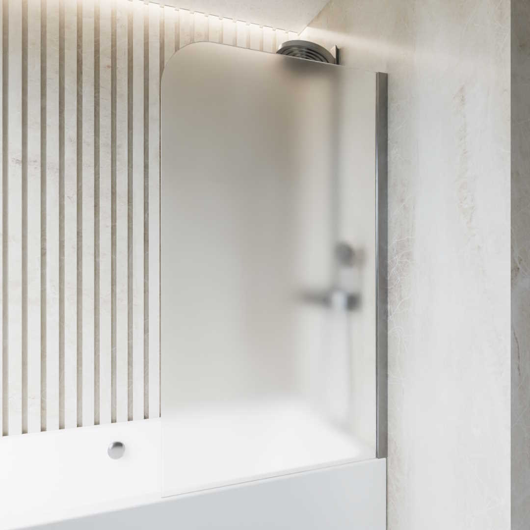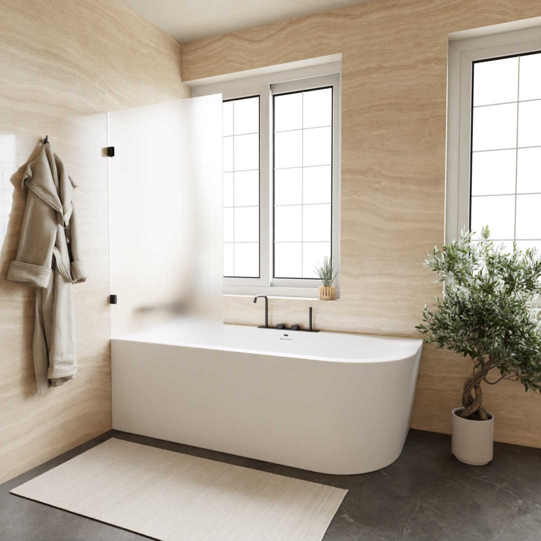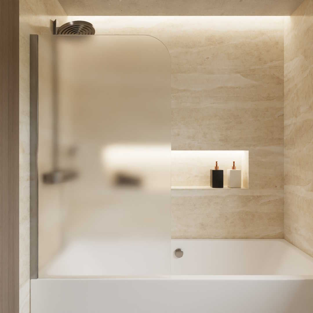 Der Badewannenaufsatz aus satiniertem Weißglas mit geringem Grünstich kombiniert die Vorteile von satiniertem Milchglas mit einer natürlicheren, weicheren Farbgebung. Dadurch wirkt es besonders edel. Es lässt sanftes, diffuses Licht in den Raum und sorgt gleichzeitig für die gewünschte Privatsphäre.