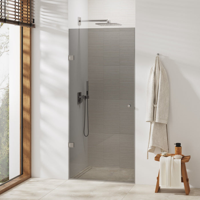 Setzen Sie stilvolle Akzente in Ihrem Badezimmer mit unserer einflügeligen Duschtür aus elegant getöntem Grauglas. Diese Premium-Duschkabine verbindet moderne Ästhetik mit diskretem Sichtschutz und schafft eine besonders edle Atmosphäre in Ihrem Bad. Das 8mm starke Sicherheitsglas in zeitgemäßer Grautönung sorgt für eine harmonische Balance zwischen Transparenz und Privatsphäre.