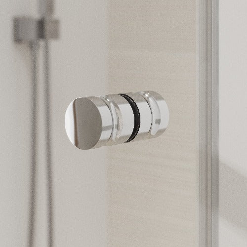 Sie erhalten Ihre Duschtüre in der idealen Stärke von 8 mm und wahlweise für die linke oder rechte Anschlagseite Scharniere im 90°-Winkel und passende Griffe aus Edelstahl, verchromt oder in Schwarz. Außerdem auch unsere Lotusbeschichtung, die eine leichtere Reinigung ermöglicht.