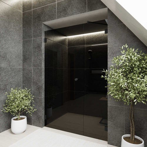 Sie erhalten Ihre Duschtüre in der idealen Stärke von 8 mm und wahlweise für die linke oder rechte Anschlagseite Scharniere im 90°-Winkel und passende Griffe aus Edelstahl, verchromt oder in Schwarz. Außerdem auch unsere Lotusbeschichtung, die eine leichtere Reinigung ermöglicht.