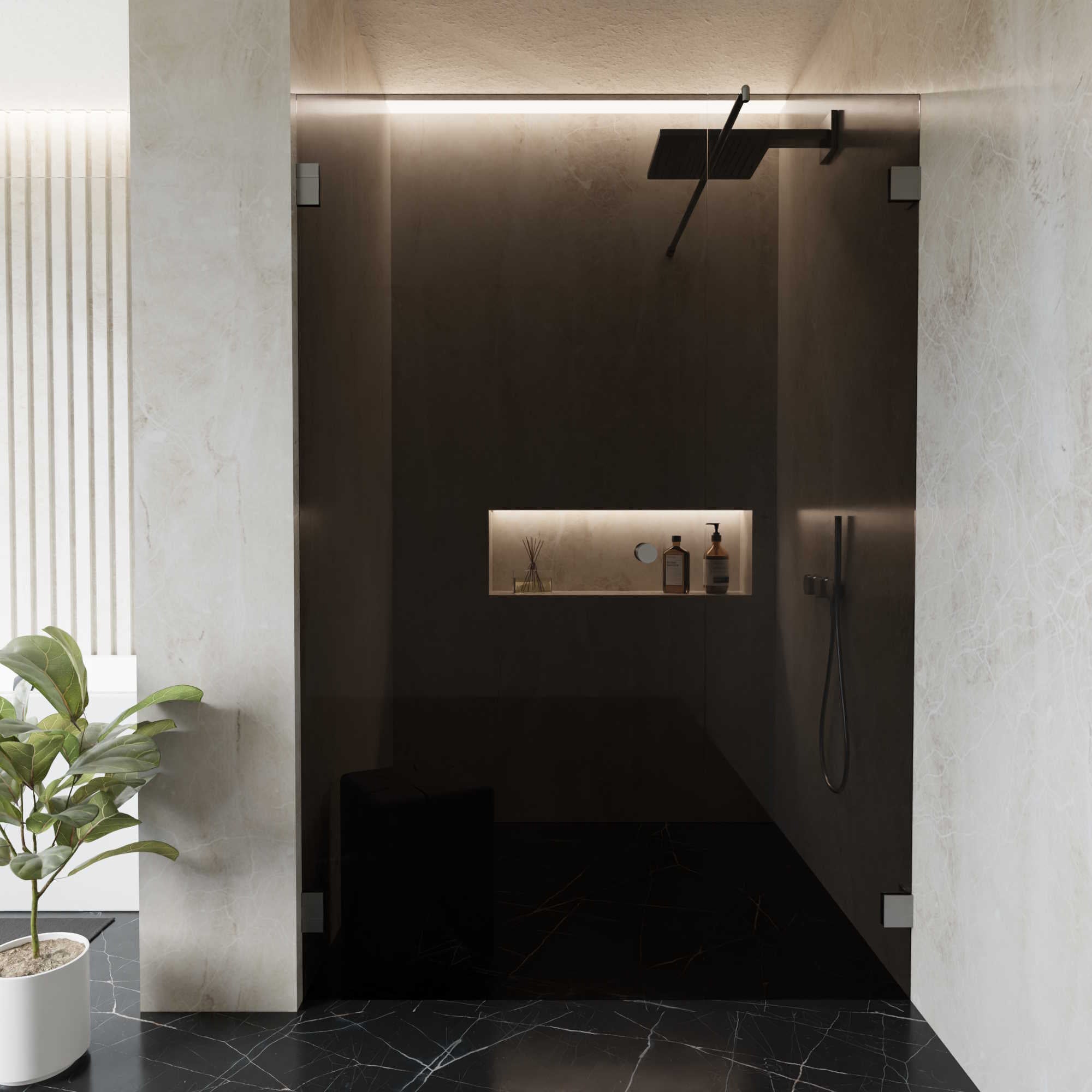 Das Einscheibensicherheitsglas (ESG) ist besonders stabil und widerstandsfähig, was für Sicherheit und Langlebigkeit sorgt. Mit einer modernen und zugleich subtilen Optik sorgt das Grauglas für ein stilvolles Duscherlebnis.