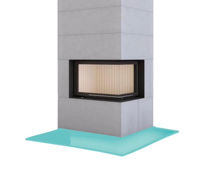 Funkenschutzplatte für Kaminbausatz BSK 02 Brunner Eckkamin 57/67/44 11kW mit Schiebetür in 6 mm Glasdicke