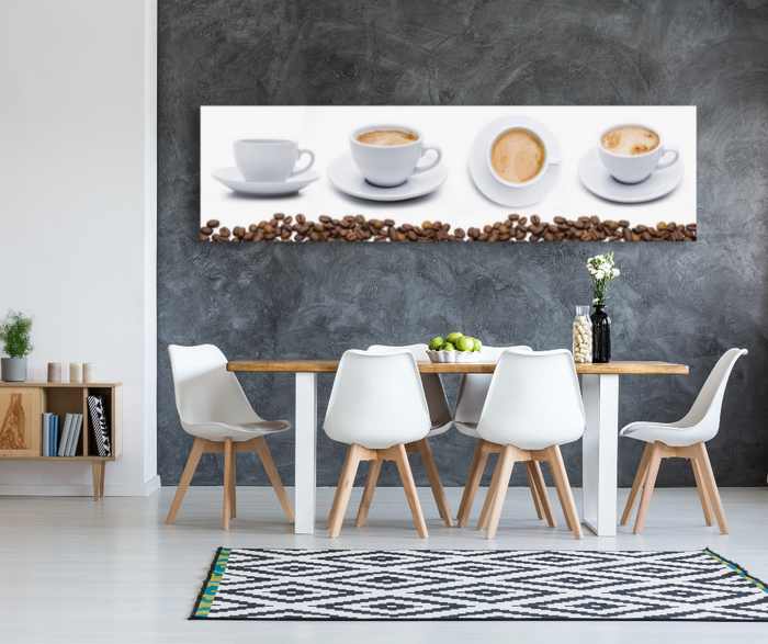 Kaffee und besonders leckere Kaffeebohnen siehen aus jeder Perspektive gut aus, deswegen haben wir für Sie ein perfektes Motiv für Ihre Wand. Querformat in einer angenehmen 200 x 54 cm Maße, perfekt für jede Wand.