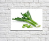Glasbild "Frühlingszwiebeln" aus 6mm ESG Sicherheitsglas mit Küchen Motiv.