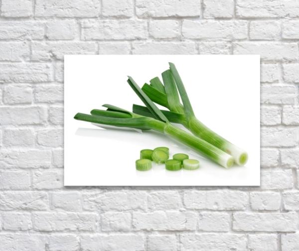 Nicht nur geschnitten dünn und knackig, Frühlingszwiebeln bringen frühlingshaften, frischen Geschmack in Ihr Zuhause. Querformat in einer angenehmen 90 x 60 cm Maße, perfekt für jede Wand.