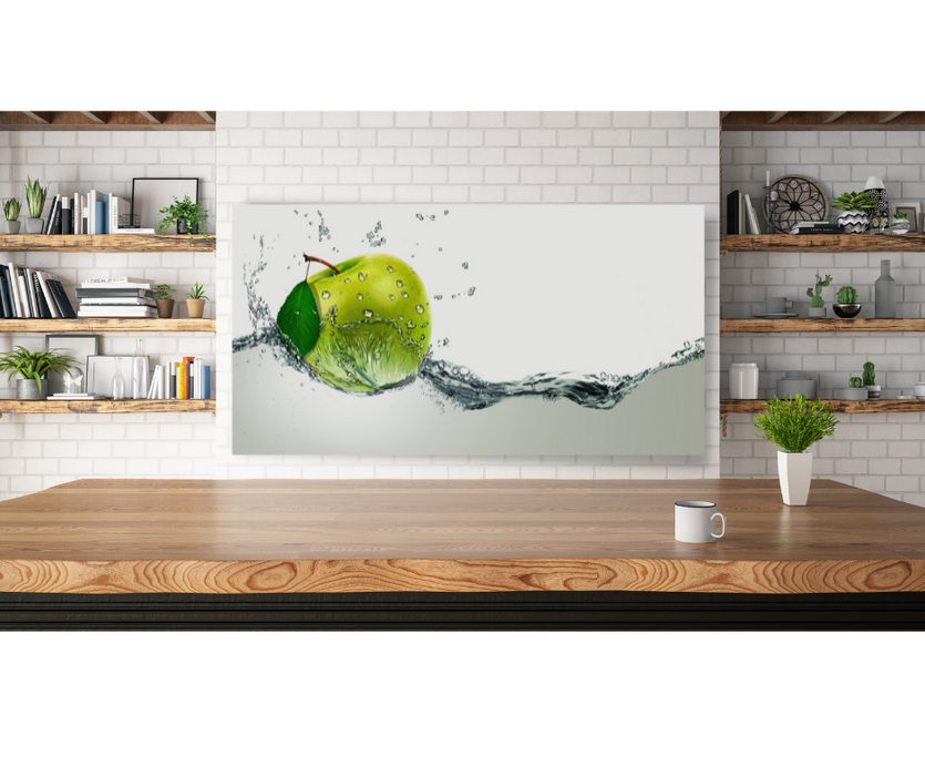 Glasbild "Green Apple" aus 6mm ESG Sicherheitsglas mit Küchen Motiv.