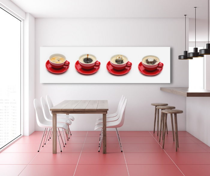 Der beste Geruch und das schönste Geräusch, wenn der letzte Kaffeetropfen in Ihre Tasse tropft, herrlich. Querformat in einer angenehmen 224 x 63 cm Maße, perfekt für jede Wand.
