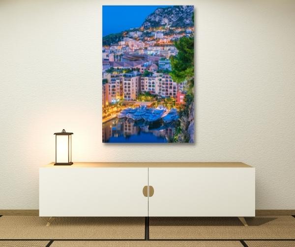 Sie wollen ein reiches Urlaubsfoto in Ihrem Zimmer haben, dann haben wir ein schönes Motiv von der Promenade Monaco's in der Nacht für Sie. Hochformat in einer angenehmen 80 x 120 cm Maße, perfekt für jede Wand.