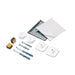 - Komplettset bestehend aus 2 x Spiegelblech, 2 x Dübel, 2 x Schrauben, 2 x Wandhalter, 2 x Zentrierhalter, 2 x Abstandhalter