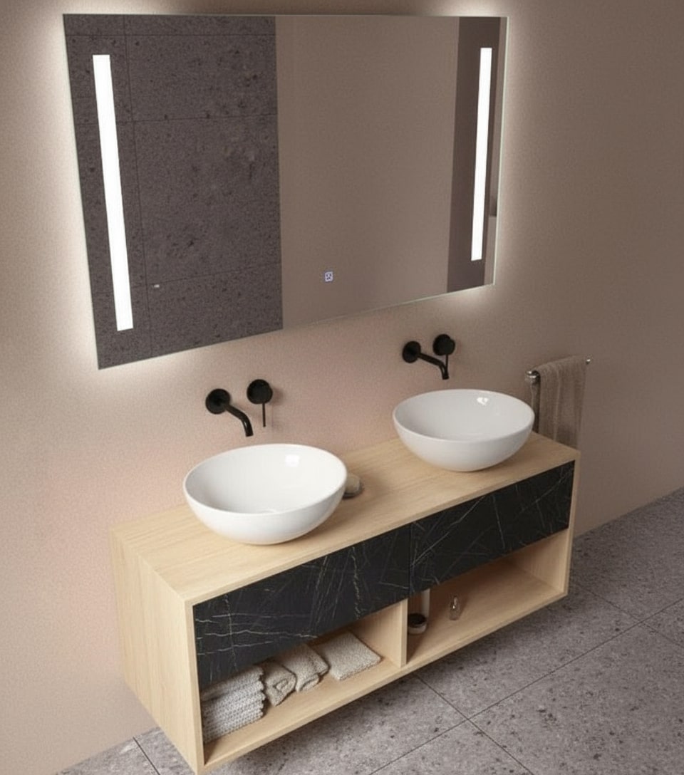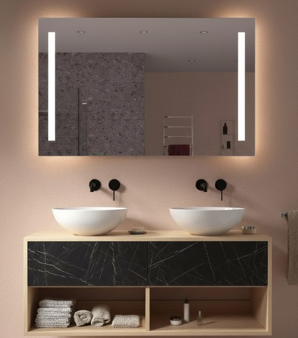 Beim Linea Inner Vertical ist die vertikale Beleuchtung dezent nach innen versetzt – ein raffiniertes Detail, das Eleganz und Weichheit ins Lichtdesign bringt. Das indirekte LED-Licht betont die Spiegelfläche, ohne zu blenden, und schafft eine ruhige, gleichmäßige Ausleuchtung.