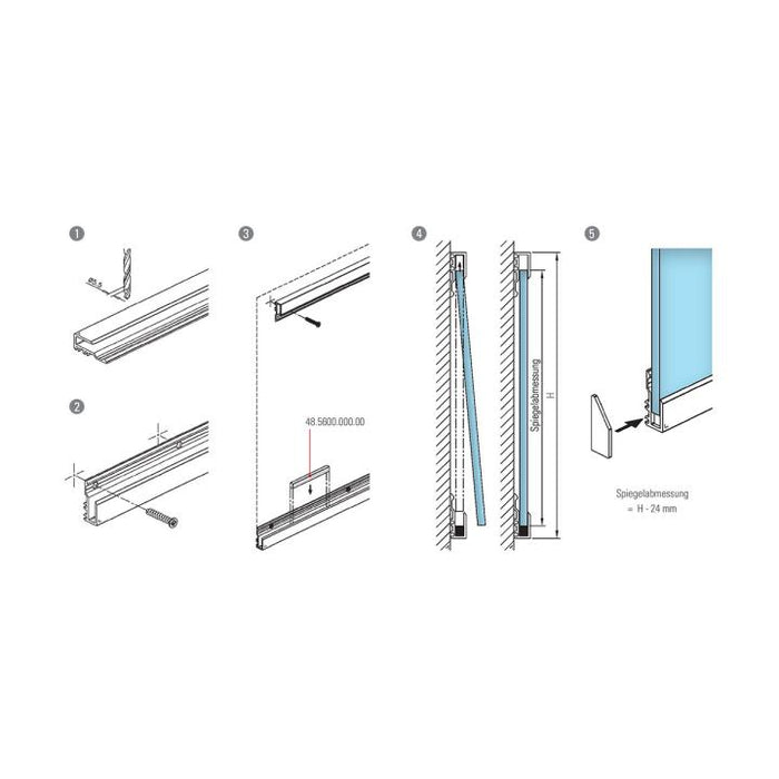 Hinweis: pro Spiegel werden 2 Schienen (1 x für oben und 1 x für unten) benötigt.