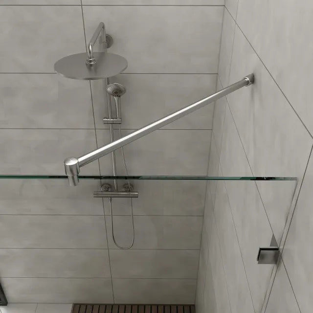 Edelstahl Stabilisierungsstange im Komplettset zur sicheren Befestigung im 45° Winkel. Erhältlich in den Längen 250 mm, 1000 mm und 1250 mm. Lieferung im Komplettset mit Wand- und Glasbefestigung zur sofortigen und einfachen Montage von Duschabtrennungen.