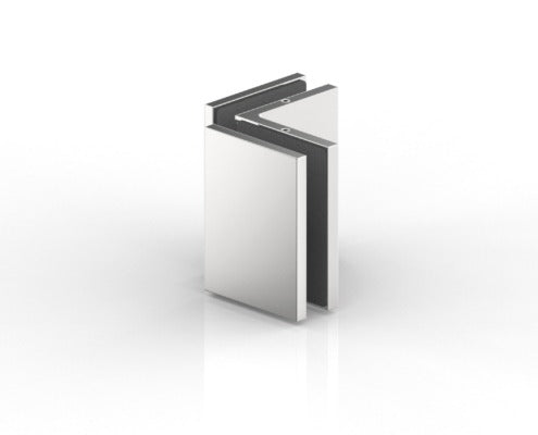 AMBER Winkelverbinder zur Befestigung von feststehenden Glaselementen.